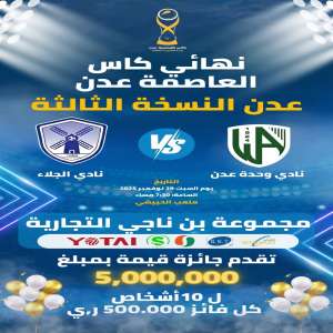 مجموعة بن ناجي التجارية تحتفي بذكرى الجلاء بـ5 مليون ريال جوائز لجماهير نهائي كأس عدن