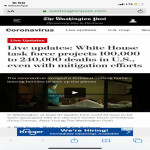 البيت الأبيض يتوقع وفاة نحو 240 الف أمريكي جراء فيروس كورونا قدم الفريق العامل للبيت الأبيض المعني بفيروس كورونا الثلاثاء، صورة قاتمة عن الوضع الذي ستصل ال...