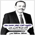 غدا .. احياء الذكرى الرابعة لإستشهاد اللواء جعفر محمد سعد بعدن تحت رعاية محافظ محافظ عدن وبالتنسيق مع السلطة المحلية لمديرية خورمكسر ممثلة بالمدير العام ناصر الجعد...