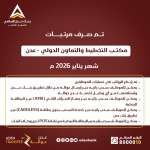 صرف مرتبات مكتب التخطيط والتعاون الدولي بعدن لشهر يناير 2026 أُعلن عن صرف مرتبات موظفي مكتب التخطيط والتعاون الدولي في عدن لشهر يناير 2026م، حيث تم إيداع الرواتب...