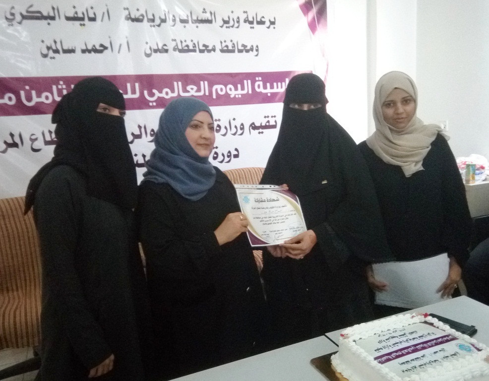 جاءت الدورة التدريبية في إطار الاحتفال باليوم العالمي للمرأة، استضافتها جمعية الفردوس التنموية النسوية، برعاية من معالي وزير الشباب والرياضة نائف البكري، ومحافظ محافظة عدن أحمد سالم رُبيع.