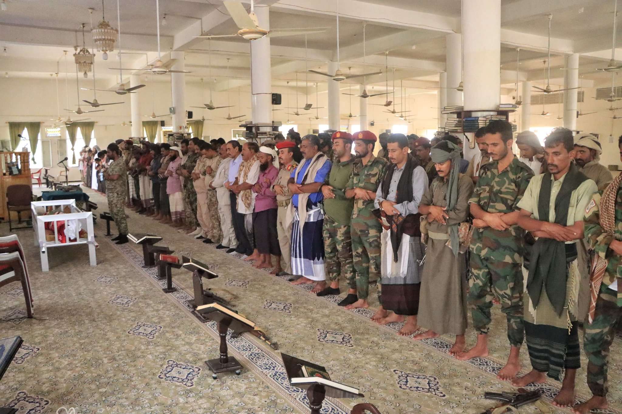 وقد شيع المئات من ابناء محافظة شبوة الشهيد البطل في موكب جنائزي مهيب يتقدمهم امين عام المحافظة الاستاذ/ عبدربه هشله ، ورئيس انتقالي شبوة الشيخ/ لحمر علي لسود ، واركان قوات دفاع شبوة قائد اللواء الثاني العميد/ وجدي باعوم الخليفي ، وقائد اللواء السادس صاعقه العميد / عبيد العرم ، وعدد من القيادات العسكرية والامنية في المحافظة وجمع غفير من المواطنين