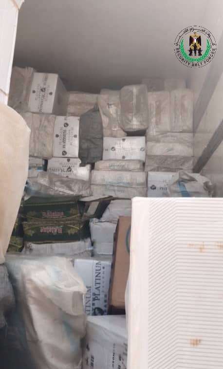 ضبطت قوات الحزام الأمني بمحافظة لحج، اليوم، كمية كبيرة من السجائر المهربة متعددة الأنواع، في نقطة الحسيني شمالي مدينة الحوطة، كانت في طريقها إلى العاصمة اليمنية صنعاء.