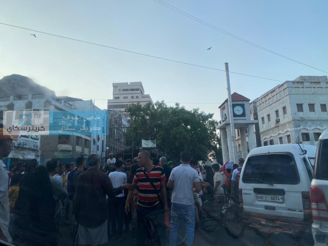 تظاهر العشرات بمدينة كريتر قبل قليل تنديدا بانهيار خدمة الكهرباء