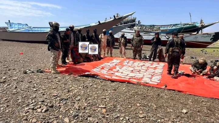 حيث تمكنت القوة من إيقاف القارب والقبض على أربعة مهربين، والعثور على 156 كيساً تحوي نحو 600 ألف قرص مخدر .