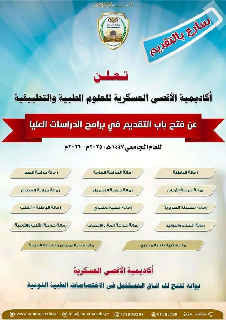 وقالت مصادر أكاديمية، اليوم الأربعاء، إن المليشيا دشّنت مؤسسة تعليمية جديدة تحت مسمى «أكاديمية الأقصى للعلوم الطبية والتطبيقية»، ومنحتها تصاريح رسمية لتدريس التخصصات الطبية باللغة العربية، في مخالفة صريحة للمعايير الأكاديمية المعتمدة دوليًا، التي تعتمد اللغة الإنجليزية لغةً أساسية للعلوم الطبية.