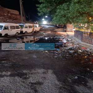 مياه الصرف والصحي وباصات اجرة تمنع سكان حي بكريتر من الذهاب الى منازلهم