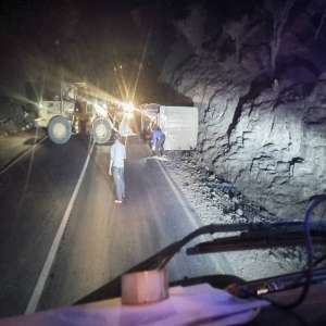 شاهد بالصورة .. انقلاب شاحنة تحمل هذا الأمر