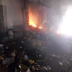 إخماد حريق نشب قرب المستودعات الطبية التابعة لوزارة الصحة العامة والسكان في حوش هيئة مستشفى الجمهوري...