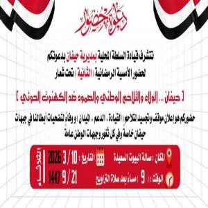 تتشرف قيادة السلطة المحلية بمديرية حيفان بمحافظة تعز، بدعوة كافة أبناء المديرية الشرفاء للحضور والمش...