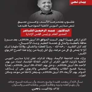 بيان نعي:بقلوبٍ يعتصرها الألم، وبحزنٍ عميق، تنعى مدارس النورس الأهلية النموذجية فقيدها الدكتور...