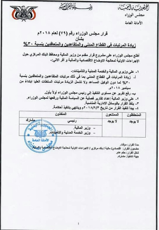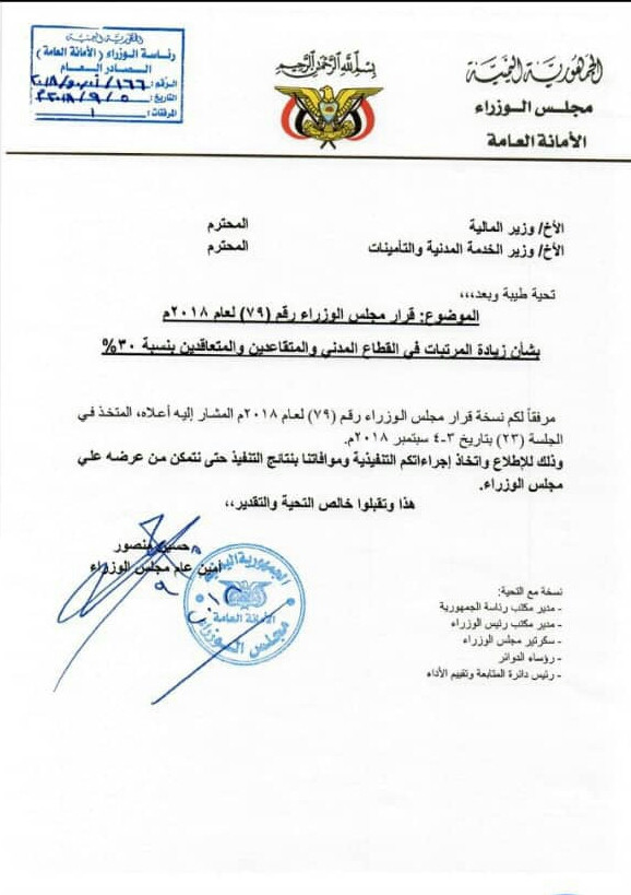 اصدر مجلس الوزراء قرارا يقضي باعتماد زيادة رواتب المتقاعدين المدنيين ابتداءا من شهر سبتمبر