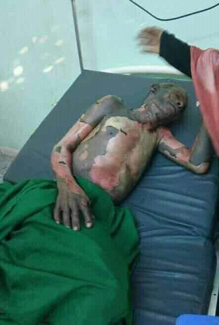 والمواطن عبده نازح من تعز لديه خمسة اطفال ، حيث قام باحراق نفسه باستخدام الجاز بعد ان عجز عن توفير لقمة العيش لاطفاله.
