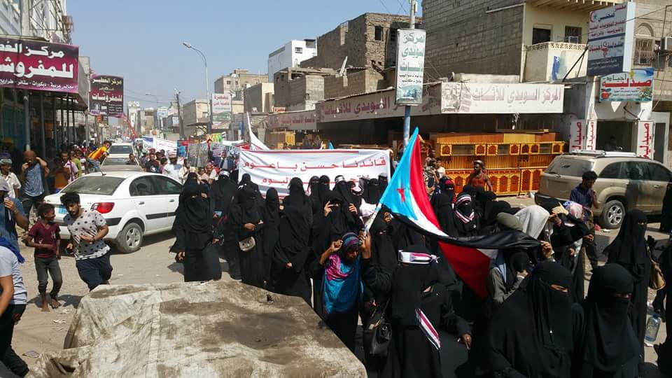 وتشهد مدينة عدن مظاهرات غاضبة منددة بالاوضاع المأساوية التي تشهدها المحافظات المحررة وبفشل الشرعية والتحالف في ادارتها.