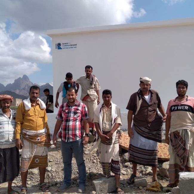 بتكليف من مدير عام مديرية المسيمير محافظة لحج الشيخ حاميم محمد سعيد الحوشبي, تسلم الأستاذ أحمد الحيمدي ممثل السلطة المحلية من منظمة البحث عن أرضية مشتركة, الخزان الخاص بمشروع مياه منطقة مكيديم وكذلك مشروع مياه منطقة جاودون والذي جرى تزويده بشبكة الضخ الرئيسية التي تنقل إمدادات الماء من المضخة الواقعة في البئر إلى مبنى الخزان.