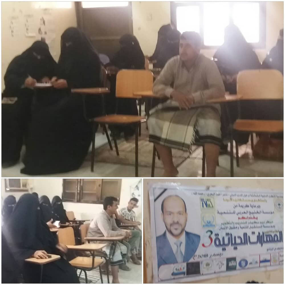 بمناسبة الذكرى السنوية الثالثة لرحيل المدرب الدولي ناصر البحري رحمة الله وبرعاية كريمة من مكتب التربية والتعليم بخنفر نظمت مؤسسة الخليج العربي للتنمية بمحافظة ابين دورة المهارات الحياتية عصراليوم الأثنين 24/12/2018الدورة التدريبية تحت عنوان ( محور التفكير الايجابي ) وكان عدد المشاركين 25 مشارك و مشاركة وشهدت الدورة تفاعلا كبيرا من المشاركين