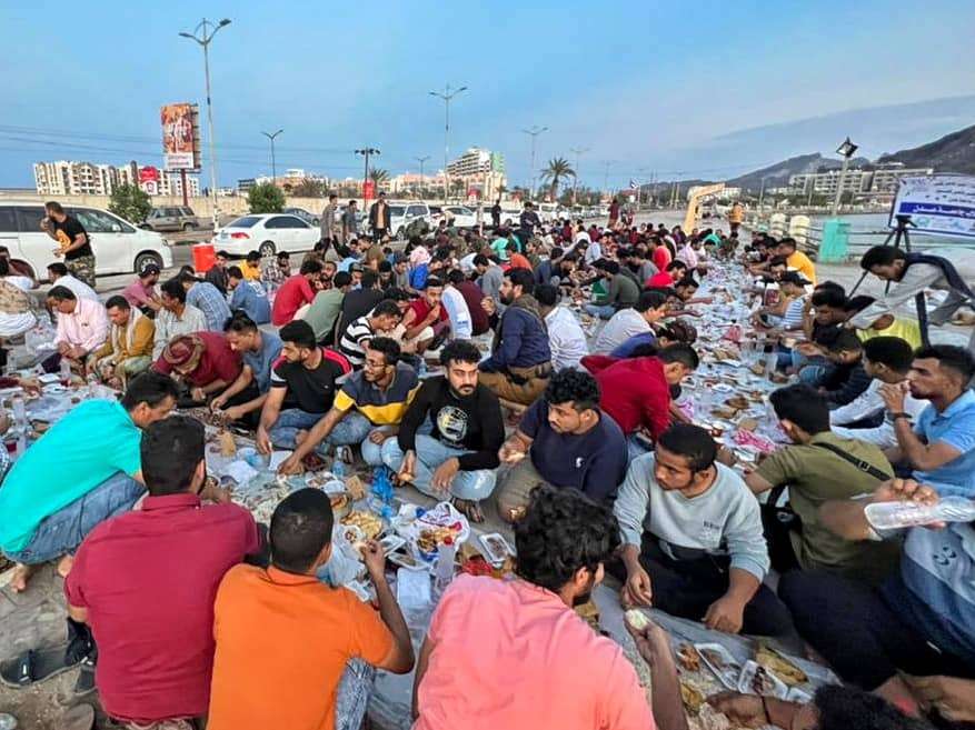 نظم الاتحاد العام لطلاب جامعة عدن وبالتعاون مع المجالس الطلابية للكليات،مأدبة الافطار الجماعي لأساتذة وطلاب كليات جامعة جامعة عدن،في مديرية خور مكسر كورنيش الشهيد جعفر محمد سعد،مساء اليوم السبت الموافق 2022/4/23م،ويعتبر الافطار الجماعي الجامعي الأول من نوعه، تحت شعار مودة وألفة؛لترسيخ روح الإخاء.