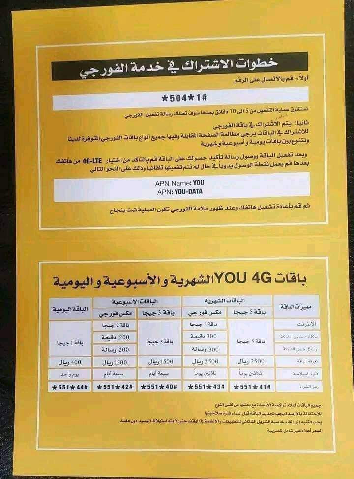 وكانت شركة yuo دشنت رسميا تشغيل خدمة 4g بصنعاء ومن المتوقع ان تتفعل الخدمة بعدن خلال الايام القادمة.