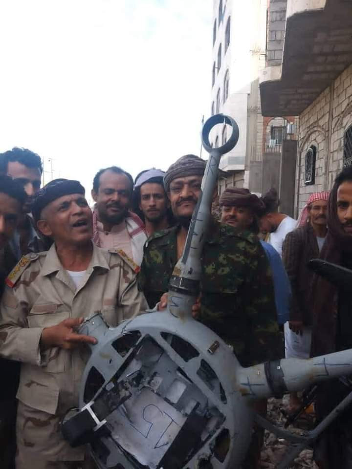 وعقب اسقاطها قام عدد من مواطنين تعز بالتقاط الصور والتجوال بالشوارع معها.