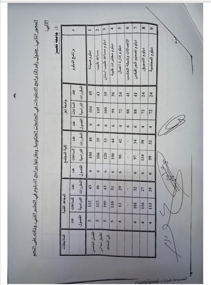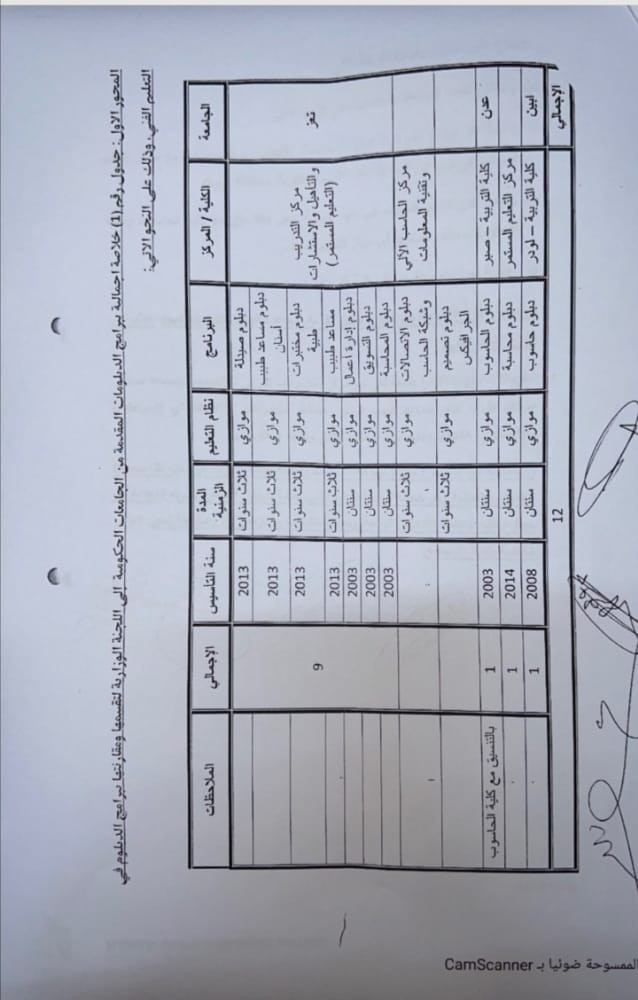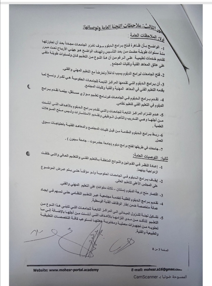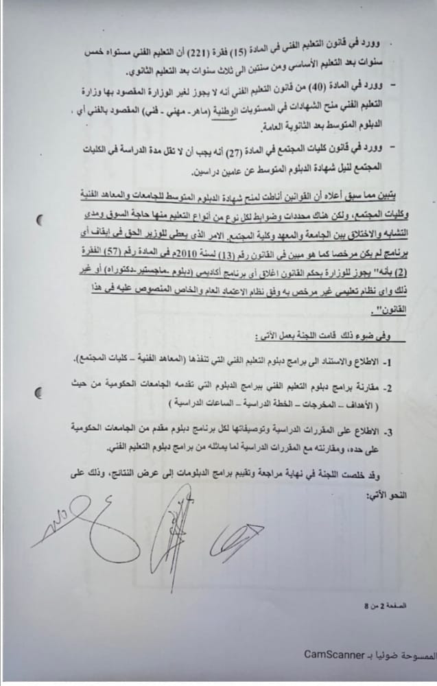 نشرت وزارة التعليك العالي تقرير اللجنة الوزارية المكلفة بدراسة برامج الدبلومات في الجامعات الحكومية كالتالي: