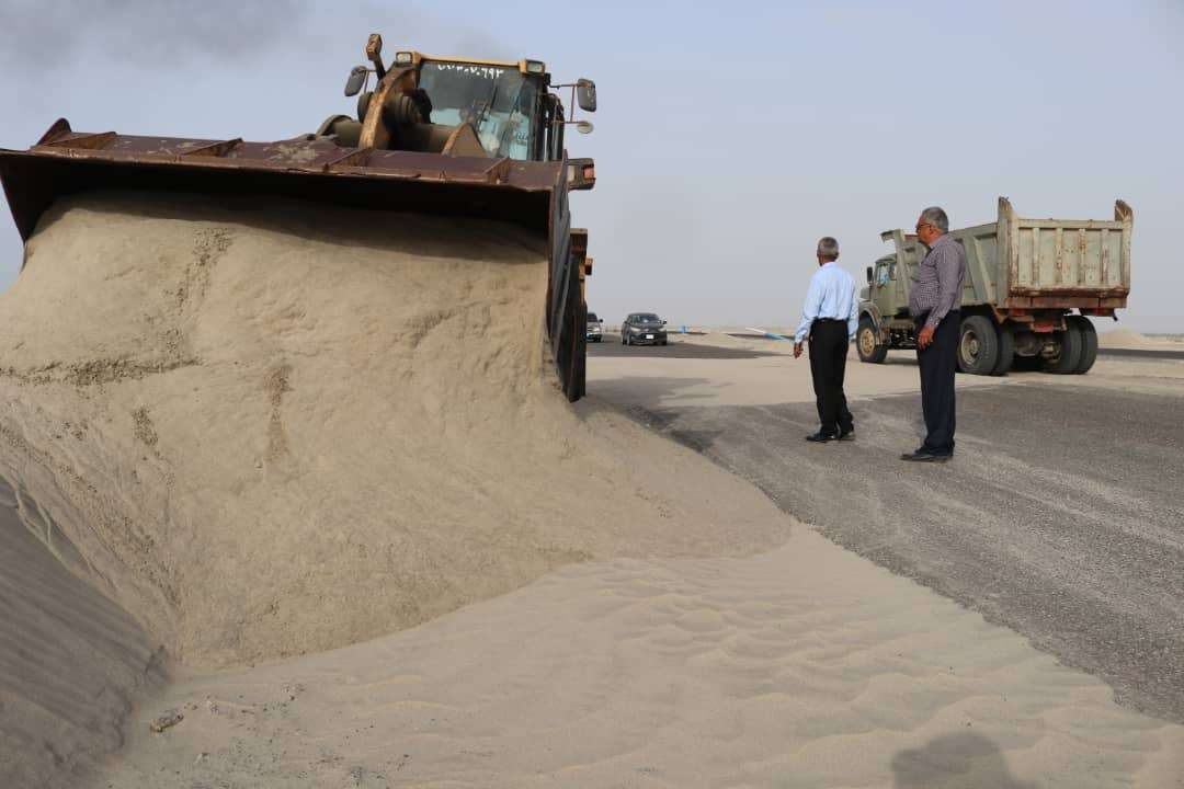 وتقوم الفرق الفنية على إزاحة الرمال من خط العلم دوفس تفادياً للحوادث المرورية.