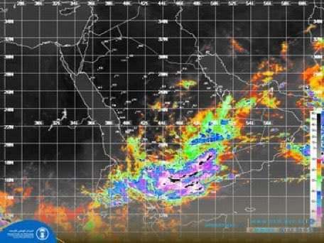 وتوقع مركز الارصاد هطول أمطار متفاوتة الشدة مصحوبة بالعواصف الرعدية والبرد خلال الـ 24 ساعة القادمة، على المناطق الشرقية و الصحارى ومرتفعات ووديان محافظات ( المهرة، حضرموت وشبوة) وتمتد إلى أجزاء من محافظات ( أبين، البيضاء ولحج) وعلى السواحل الشرقية والشرقية الجنوبية والمناطق الداخلية المحاذية لها.