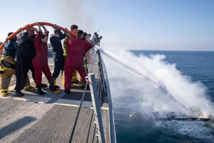 وقالت البحرية: إنقاذ ثلاثة مواطنين يمنيين احترق قاربهم في المياه الدولية بخليج عدن.