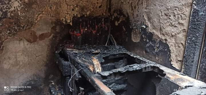 افاد شهود عيان عن احتراق منزل بالكامل في مديرية المنصورة وتشرد الأسرة.