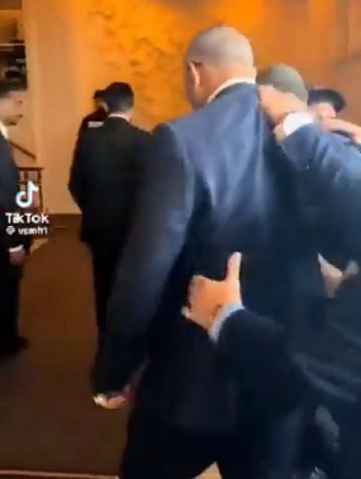 وقال : مقطع فيديو متداول حيث تم تصوير عيدروس الزبيدي عند دخوله إلى قاعة الحفل بنيويورك ونتيجة لتجمهر الناس بكثافة عند البوابة للسلام علية وخوفاً من التدافع تم إدخاله بسرعة.