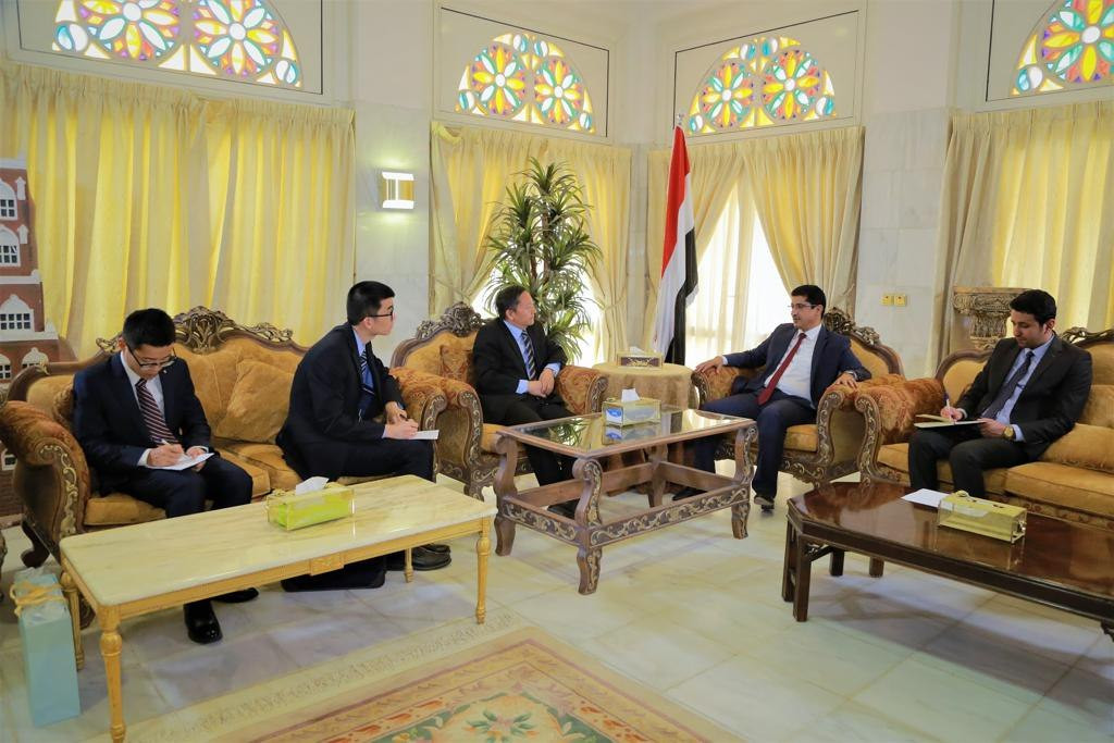 التقى وكيل وزارة الخارجية للشؤون السياسية الدكتور منصور بجاش اليوم القائم بأعمال السفير الصيني لدى اليمن جين هوي لبحث العلاقة الثنائية بين البلدين ومستجدات الأوضاع في اليمن.