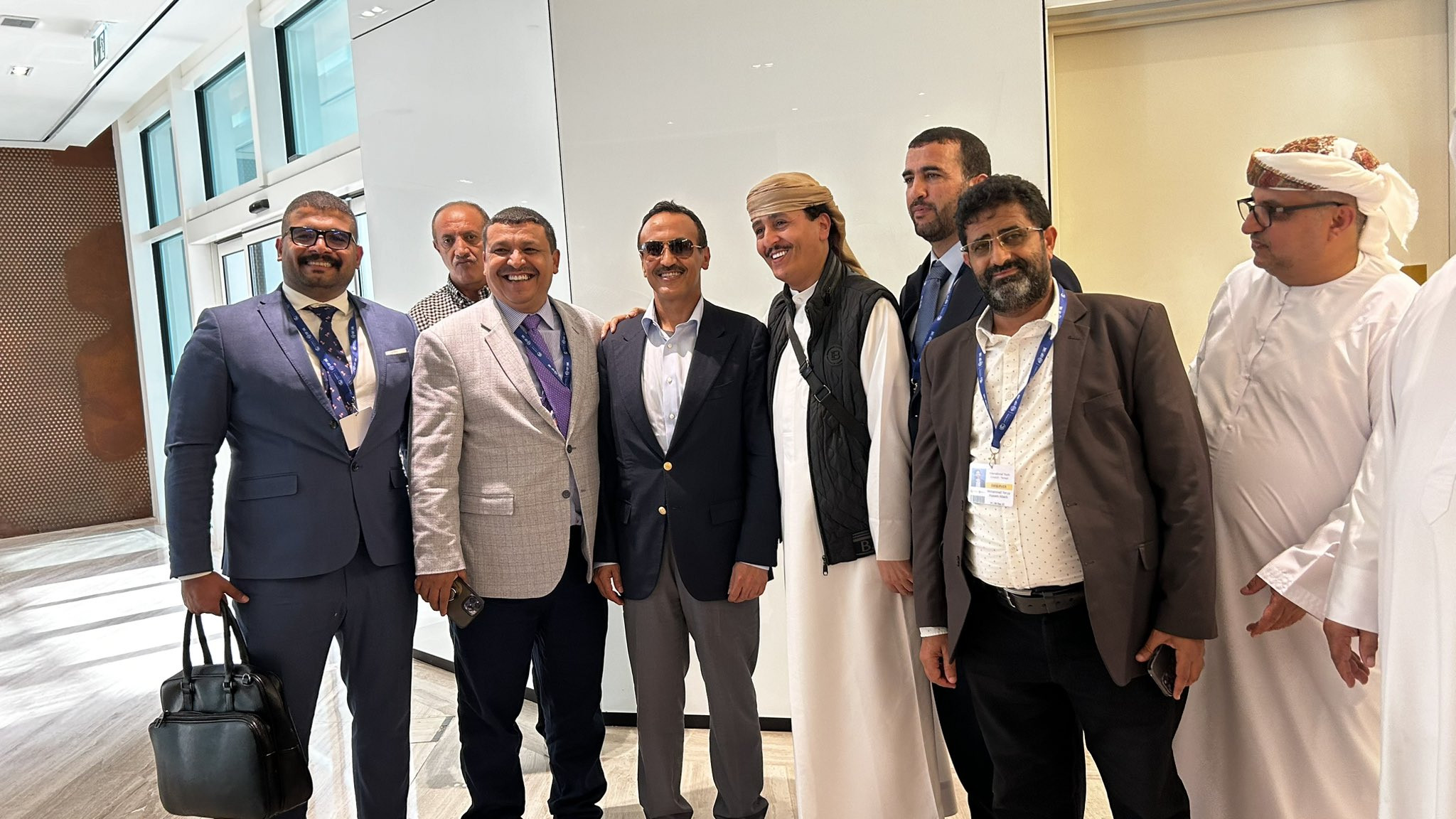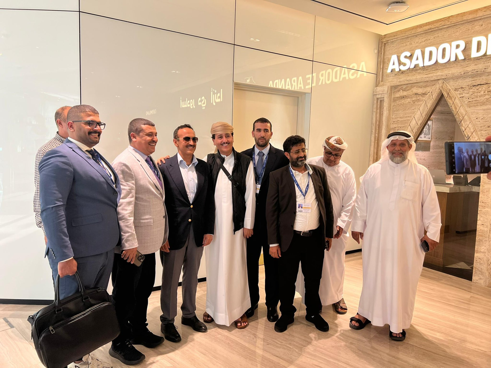 نشر مستشار وزير الإعلام في الحكومة الشرعية فهد طالب الشرفي صورة له برفقة أحمد علي عبدالله صالح وعدة أشخاص آخرين في دولة الإمارات العربية المتحدة