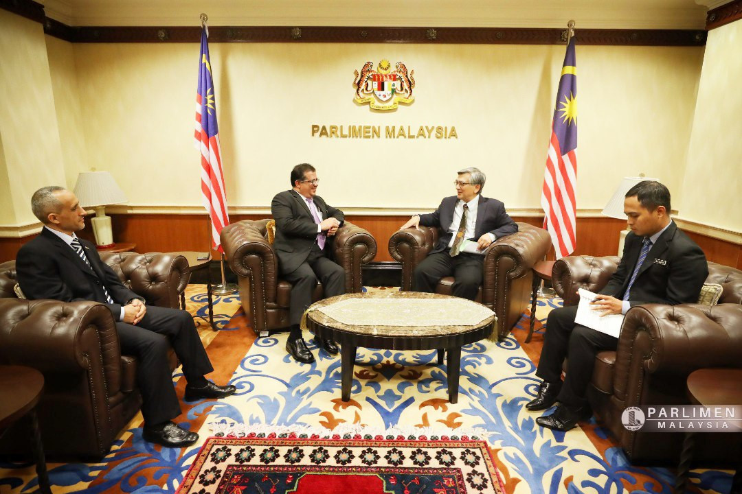 ونقل السفير باحميد الى رئيس مجلس النواب الماليزي تحيات رئيس مجلس النواب سلطان البركاني وتبريكاته بالذكرى السنوية الأولى لانعقاد المجلس بعد الانتخابات التشريعية الاخيرة في ماليزيا، شاكرا ماليزيا حكومة وشعبا على مواقفها الاخوية الداعمة للشعب اليمني خلال أزمته الراهنة.
