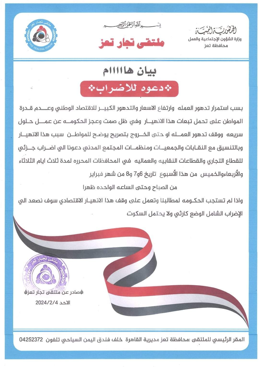 *صادر عن ملتقى تجار تعز*