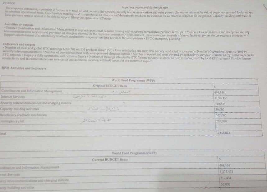 وقال إسماعيل في تغريدة نشرها على صفحته بموقع تويتر:" بحسب هذه الوثيقة بلغت تكاليف استخدام الانترنت من قبل مكتب برنامج الغذاء العالمي في اليمن لعام 1200000 دولار اي مايقارب ٦٦٠ مليون ريال يمني"