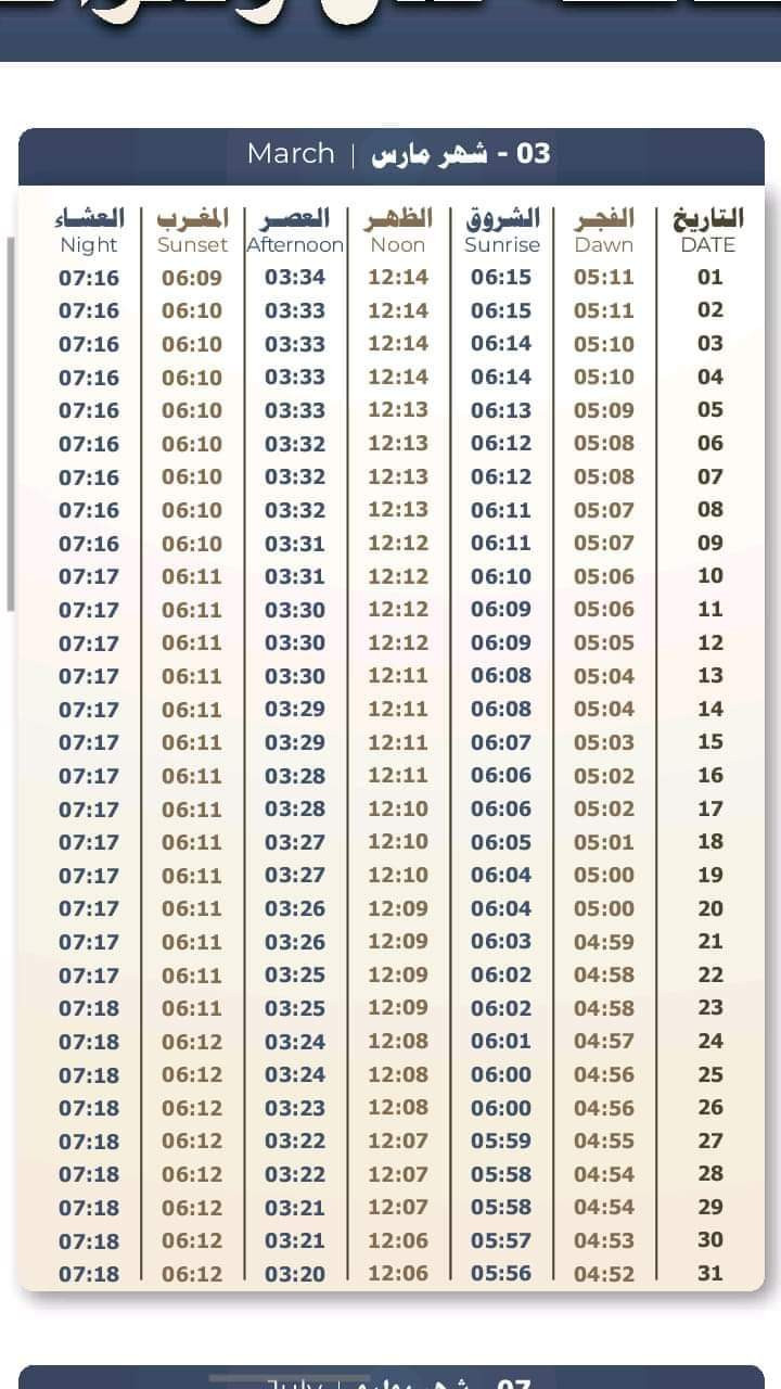 ينشر كريتر سكاي مواعيد الصلاة خلال شهر رمضان المبارك بعدن كالتالي: