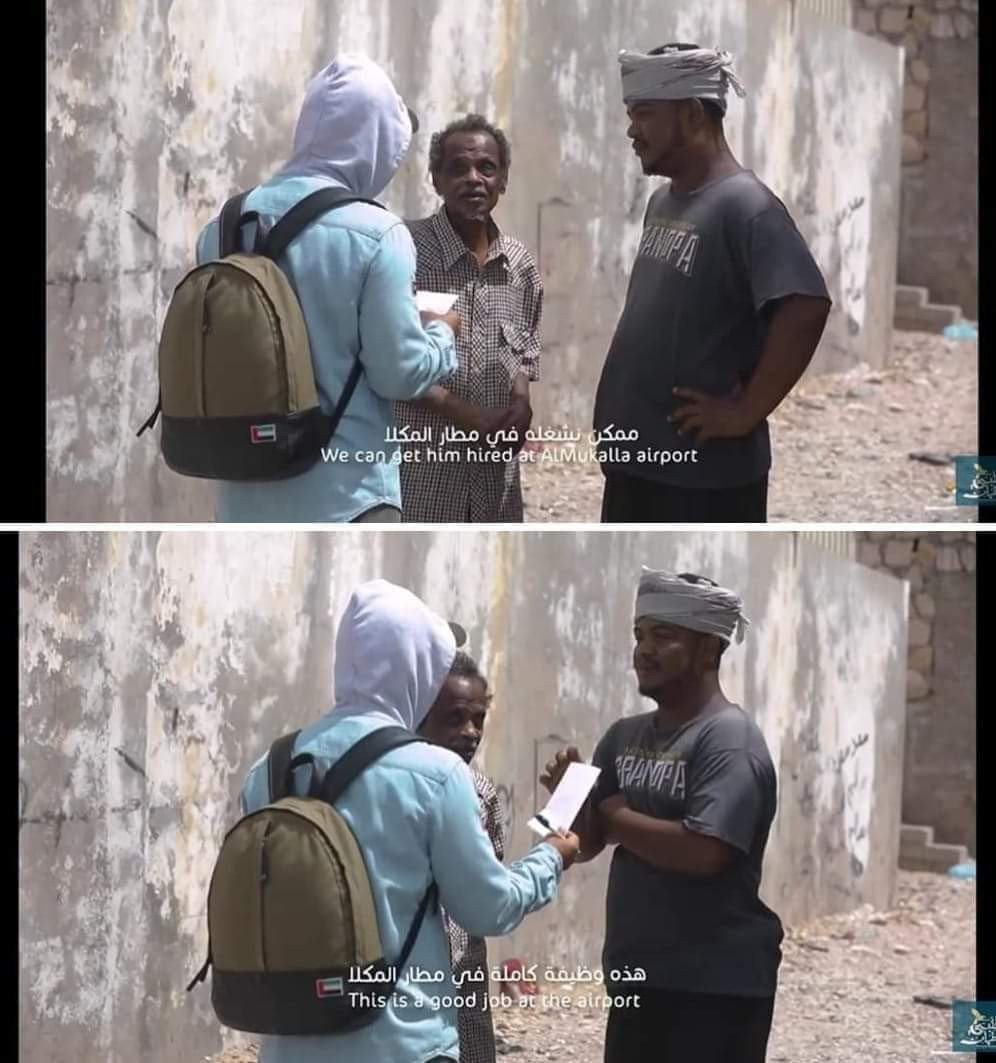 وقال مواطنون لكريتر سكاي:قام مقدم برنامج قلبي اطمأن الاماراتي غيث بتوظيف احد ابناء حضرموت بمطار المكلا.