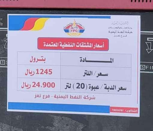 بفارق 5000 ريال .. أعلنت شركة النفط اليمنية - فرع تعز عن سعر الدبة البترول .