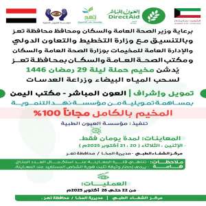 برعاية رسمية.. تدشين مخيم “ليلة 29 رمضان” المجاني لسحب المياه البيضاء وزراعة العدسات في تعز