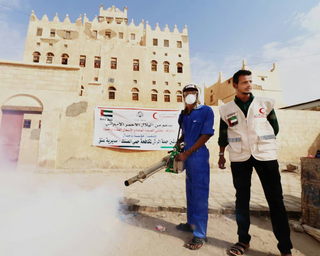 دشنت هيئة الهلال الأحمر الإماراتي بالتنسيق مع مكتب الصحة والسكان بمحافظة شبوة اليمنية صباح اليوم حملة لمكافحة وباء “حمى الضنك” وذلك ضمن جهودها المستمرة للارتقاء بمستوى الخدمات الطبية في اليمن.