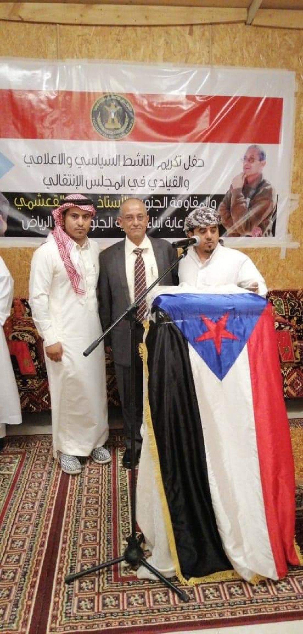 وفي الحفل الذي اداره باقتدار المبدع الجنوبي صالح المولعي القعيطي بدأ باي من الذكر الحكيم ثم النشيد الوطني الجنوبي وقراءة الفاتحة على اروح شهداء الجنوب ..