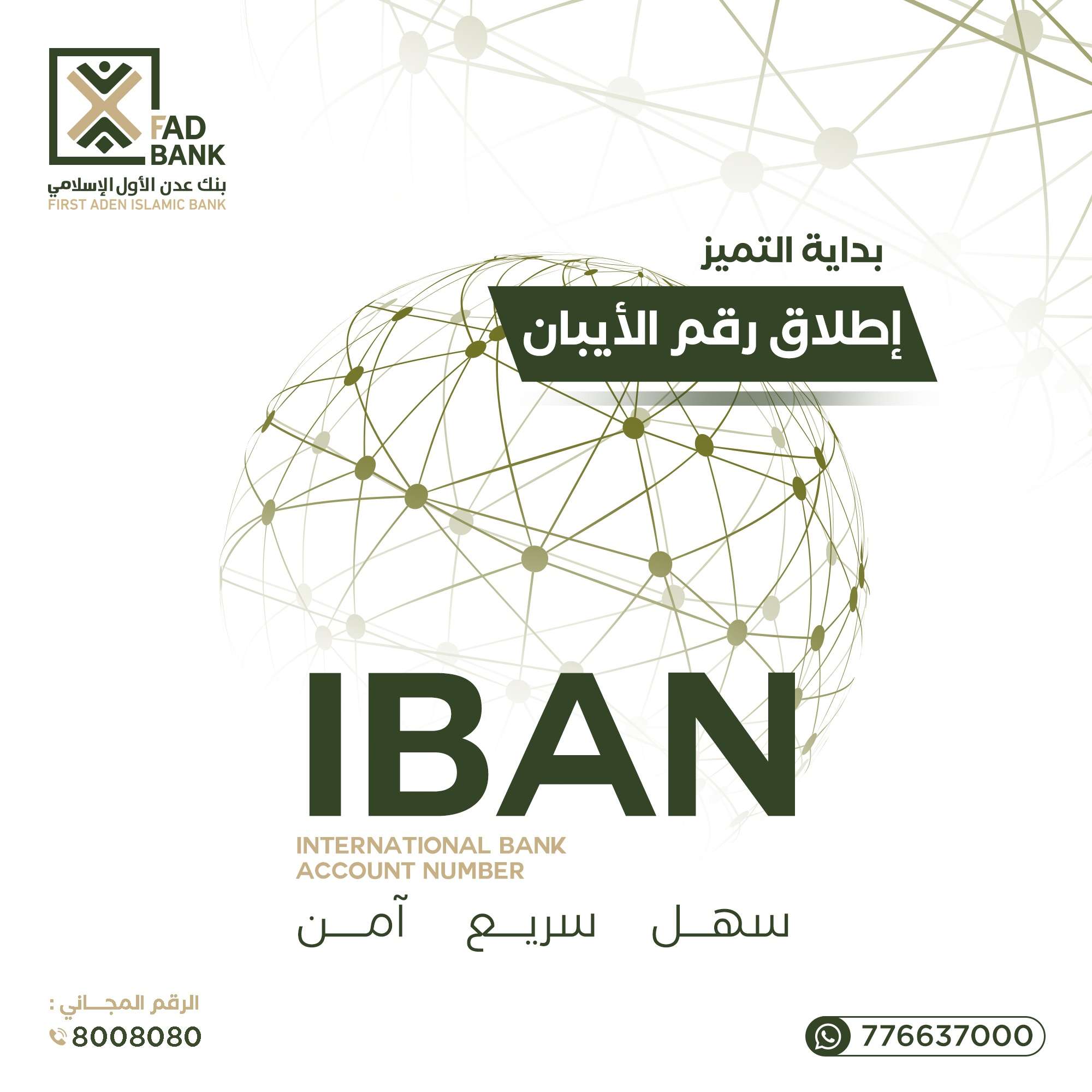 في إطار سعيه المستمر للتميز وتقديم خدمات مصرفية مبتكرة، أعلن بنك عدن الأول الإسلامي عن إطلاق خدمة رقم الايبان (IBAN)، التي تُعد نقلة نوعية في مجال الحوالات الدولية، وتهدف هذه الخدمة إلى توفير تجربة مصرفية آمنة وسريعة وفعّالة، مما يضع العملاء في قلب التميز المصرفي.