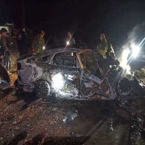 نجاة شاب بأعجوبة من حادث مروع واحتراق سيارته