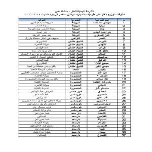 إعلان كشف توزيع غاز السيارات في عدن ليوم السبت