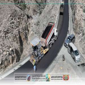 بتوجيهات وزير الأشغال العامة والطرق استمرار أعمال سفلتة طريق الشهيد أبو اليمامة في يافع ضمن مشروع التدخل الطارئ