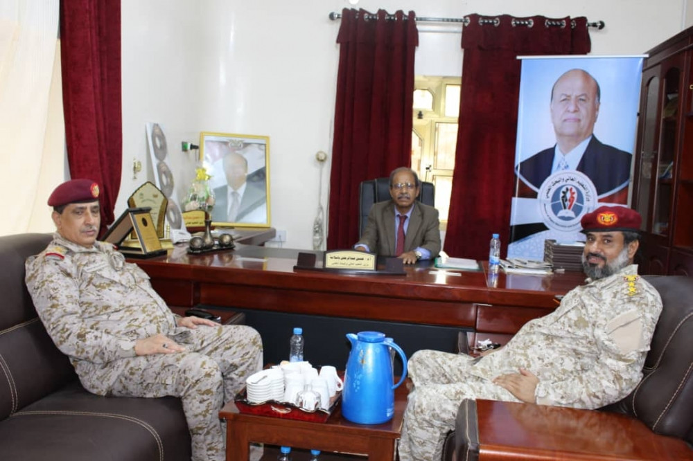 التقي وزير التعليم العالي والبحث العلمي أ.د/ حسين باسلامة ، في مكتبه بديوان الوزارة بالعاصمة عدن ، الفريق الركن /عبدالله سالم النخعي رئيس هيئة الأركان العامة بوزارة الدفاع ، لمناقشة القضايا المشتركة بين الجانبيين .