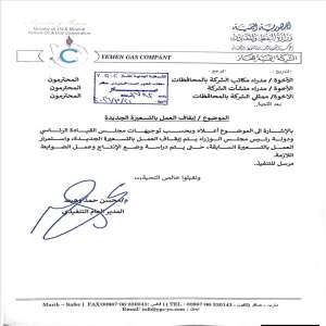 أصدر تعميم يقضي بإيقاف التسعيرة الجديدة للغاز وذلك بناءً على توجيهات دولة رئيس مجلس الوزراء.وب...