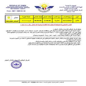 أصدر المركز الوطني للأرصاد والإنذار المبكر، اليوم الثلاثاء، النشرة التحذيرية رقم (1/12)، محذرًا من أ...