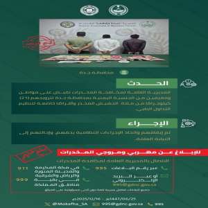أعلنت المديرية العامة لمكافحة المخدرات في المملكة العربية السعودية عن إلقاء القبض على مواطن سعودي وم...