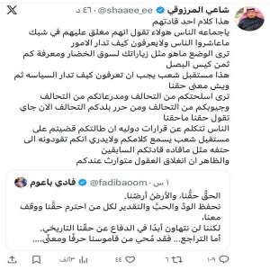 قال الصحفي السعودي شاعي المرزوقي ردا على فادي باعوم:هذا كلام احد قادتهمياجماعه الناس هولاء تقول انه...