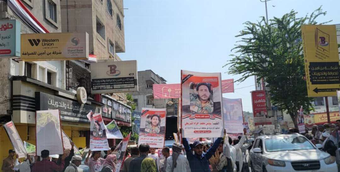 وقفة احتجاجية في تعز تطالب سلطات مأرب بالقبض على قتلة يونس الشريحي